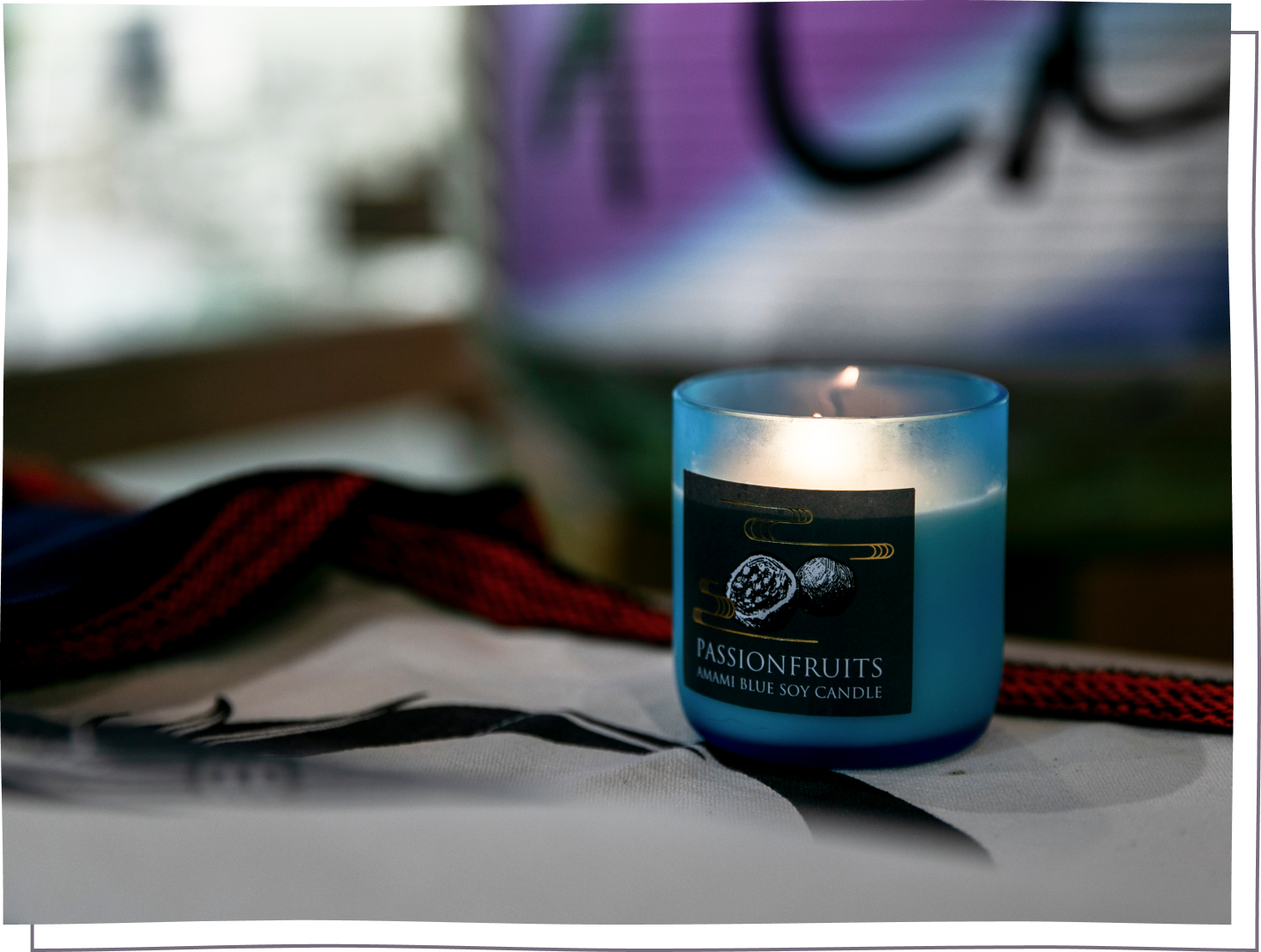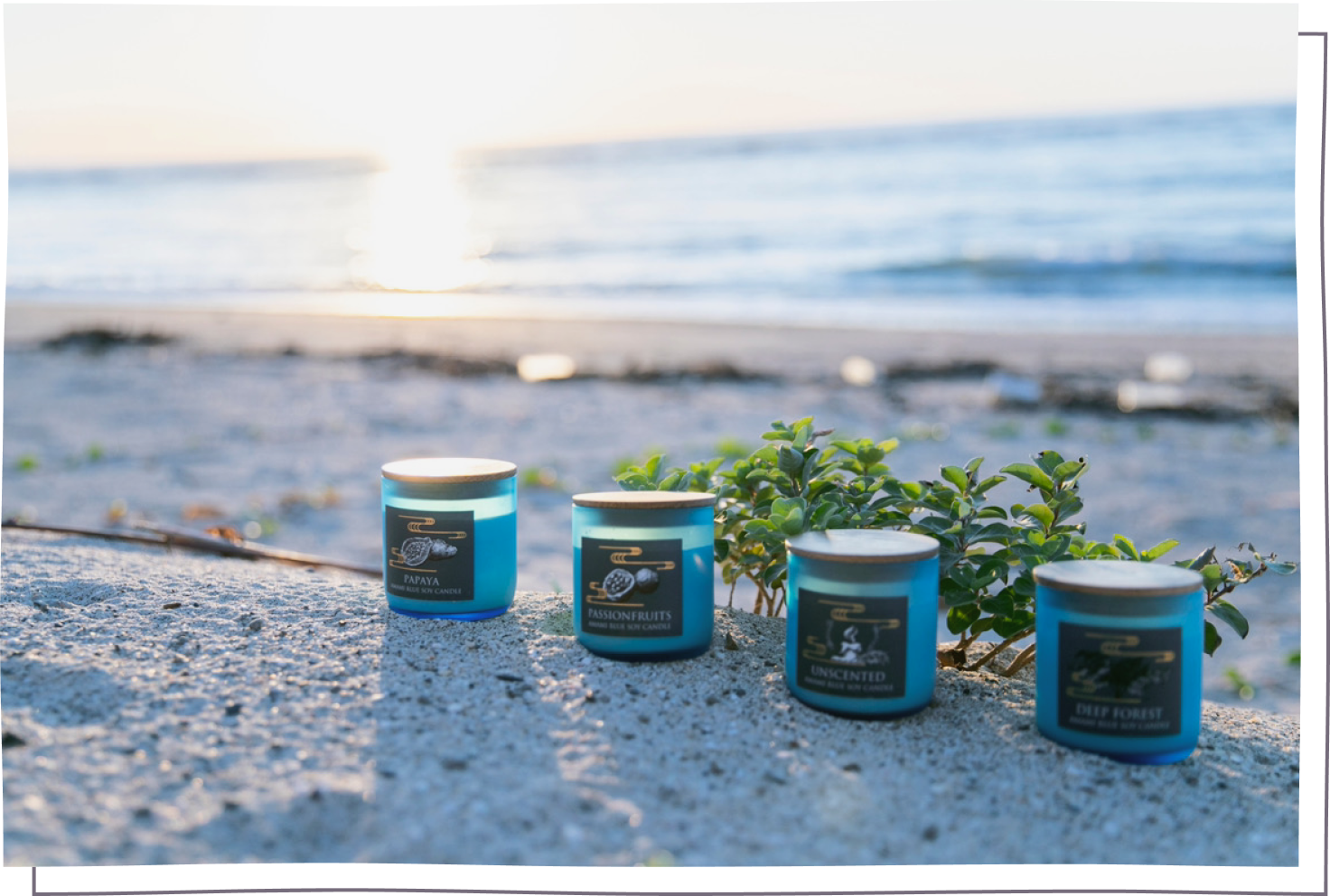 『Amami Blue Soy Candle』は、使い終わった「れんと」の瓶を再利用し、サステナブルなアロマキャンドルを皆様の元に提供します。